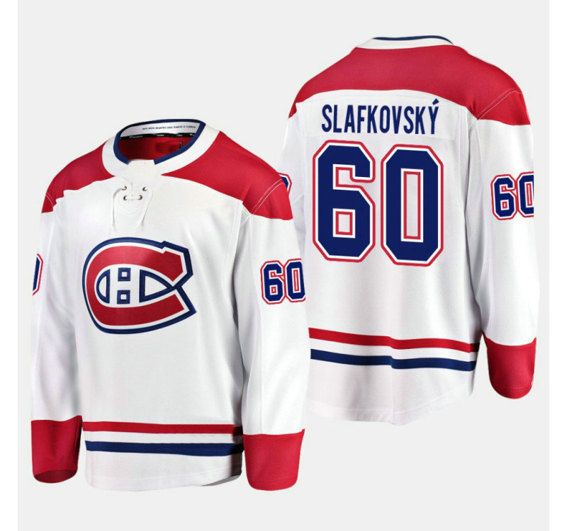 Showcase your Canadiens pride with the Montreal Canadiens #60 Juraj Slafkovsky 2022 Draft White Jersey Away. Crafted with lightweight performance fabric for breathability and mobility, it features a rounded droptail hem and side vents for unrestricted movement. Advanced moisture-wicking technology keeps you dry during games or casual wear, blending fan spirit with athletic functionalit