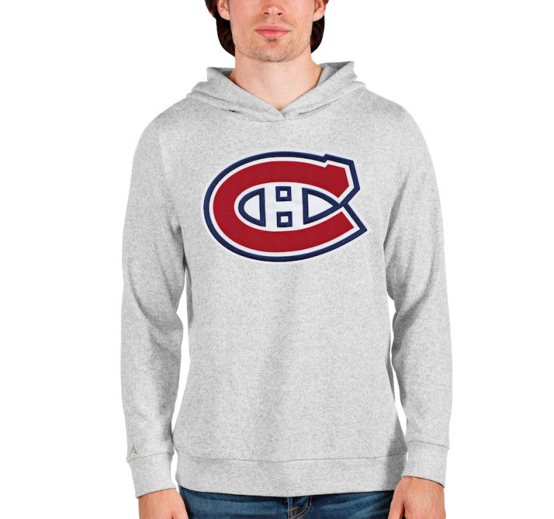 Showcase your Canadiens pride with the Montreal Canadiens Antigua Absolute Pullover Hoodie - Heathered Gray. Crafted with lightweight performance fabric for breathability and mobility, it features a rounded droptail hem and side vents for unrestricted movement. Advanced moisture-wicking technology keeps you dry during games or casual wear, blending fan spirit with athletic functionalit