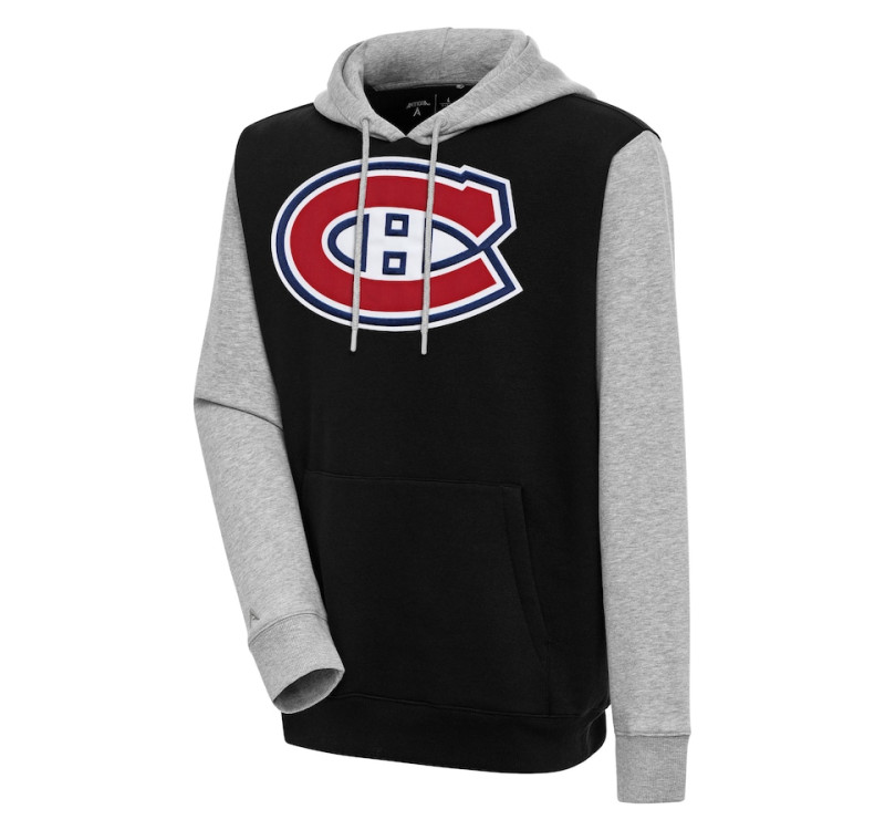 Montreal Canadiens Antigua Victory Colorblock Pullover Black/Heather Gray Hoodie