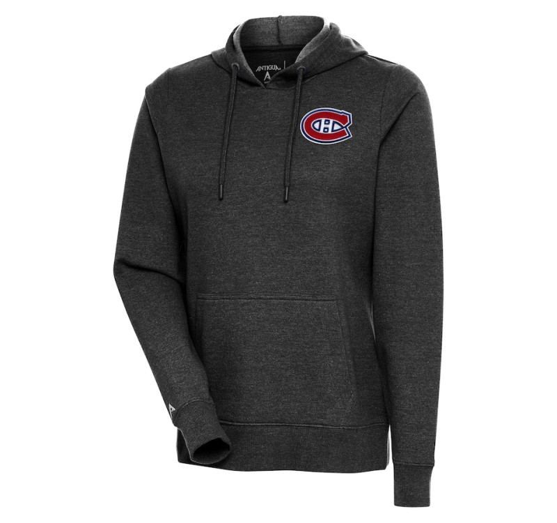 Crafted with Pro-licensed moisture-wicking fabrics and reinforced stitching for breathable durability, this Montreal Canadiens Antigua Women's Action Chenille Pullover Hoodie - Heather Black mirrors on-ice precision with ergonomic tailoring for unrestricted mobility. Thermally applied team insignias ensure lasting vibrancy, while its polished silhouette balances athletic performance and collector-grade aesthetics. Ideal for game-day wear or display, it meets elite fan standards through technical craftsmanship and official branding.