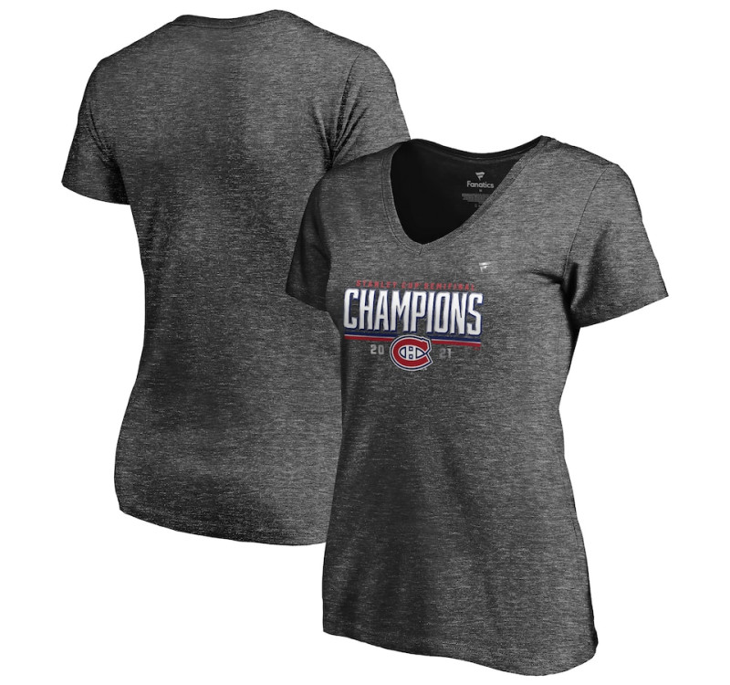 - Canadiens Women's 2021 Stanley Cup Semifinal Champions Plus Size Locker Room V-Neck T-Shirt - Heathered Charcoal