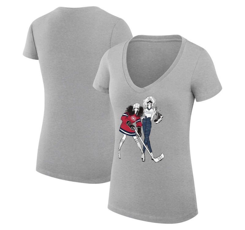 - Canadiens G-III 4Her by Carl Banks Women's Hockey Girls V-Neck Fitted Heather Gray T-Shirt