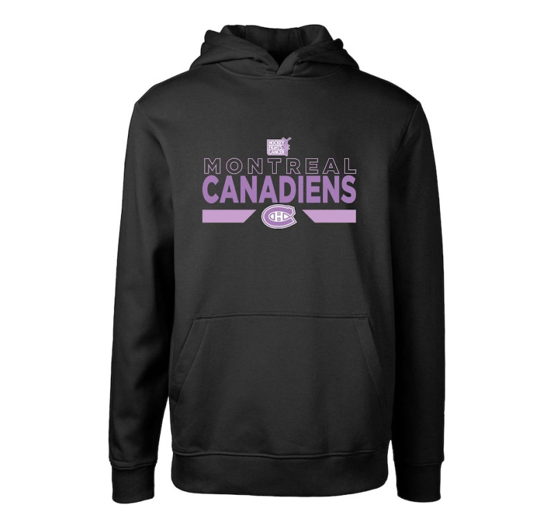 - Canadiens Levelwear Youth Hockey Fights Cancer Podium Fleece Black Pullover Hoodie