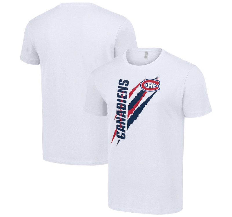 Showcase your Canadiens pride with the Montreal Canadiens Starter Color Scratch T-Shirt - White. Crafted with lightweight performance fabric for breathability and mobility, it features a rounded droptail hem and side vents for unrestricted movement. Advanced moisture-wicking technology keeps you dry during games or casual wear, blending fan spirit with athletic functionalit