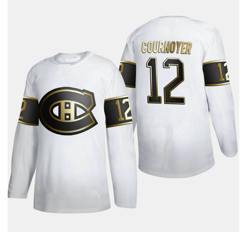 - Men's Canadiens Yvan Cournoyer #12 Golden Edition White Retired Authentic Jersey
